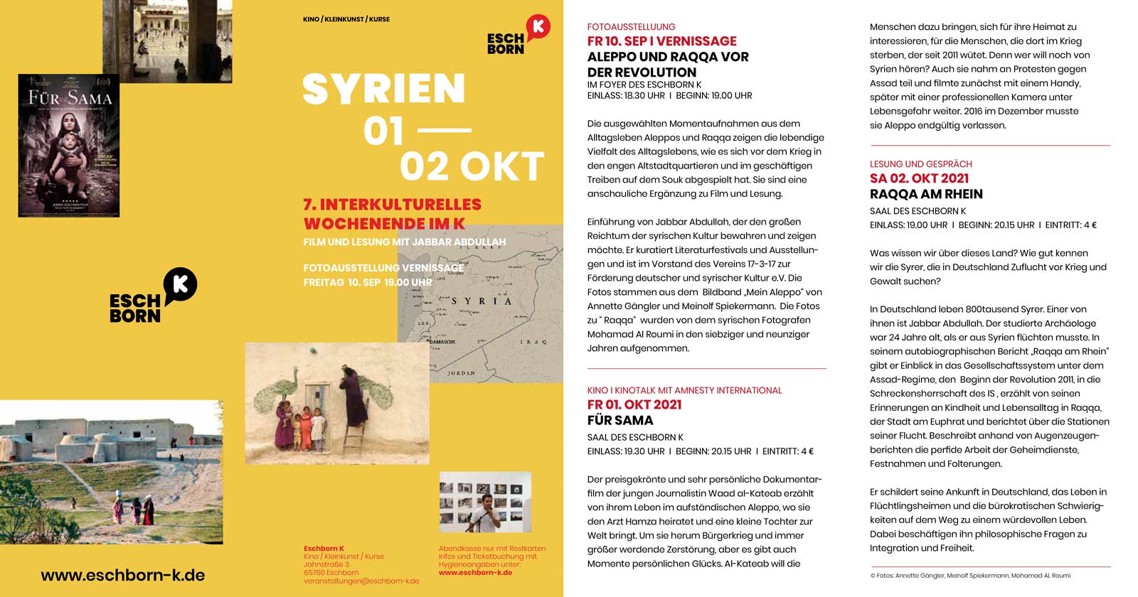 Mit der Ausstellung begibt sich der syrische Kurator und Archäologie Jabbar Abdullah auf die Spuren des kulturellen Gedächtnisses Syriens. Er zeigt historische, syrische Artefakte aus deutschen Sammlungen – jetzt teils erstmals der Öffentlichkeit zugänglich gemacht – im Dialog sowohl mit zeitgenössischen Positionen als auch der Präsentation syrischer Alltags- und Erinnerungskultur. Kalligraphien, Filmmaterial, 3D-Projektionen,… beleuchten die kulturelle Vergangenheit Syriens, seine jüngste Geschichte sowie das gegenwärtige Leben der Syrer und Syrerinnen in und außerhalb Syriens.
